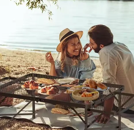 Эритме кемпинг таблицасы ачык бүктөлгөн стол. Кошулган кубогунун ээлери стресстен арылууну сунуш кылышпайт. ар кандай ачык иш-чаралар үчүн.