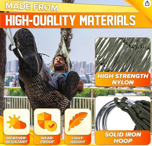 Хикинг Хикинг.Ипировкалоо, бейиште, террасалык, короодо же балкондо отуруу үчүн ылайыктуу Хикинг.И. Аны атасынын күнүн белек катары колдонсо болот. Бул бир чекит Хаммок 100 кг ашык салмагы бар. Бул хаммкок боолор менен кемчиликсиз өзгөрөт.