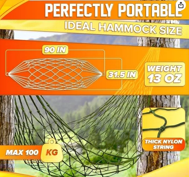 Хикинг Хаммок штатында, бул нейлон сабы Hammock жогорку жүктөмдүн жогорку кубаттуулугу жогору. Бул нейлон аркан Хаммок жогорку узактыгына жана эскилиги жеткенге чейин, үйдүн иммеку - ички жана тырышуу үчүн жеткилең