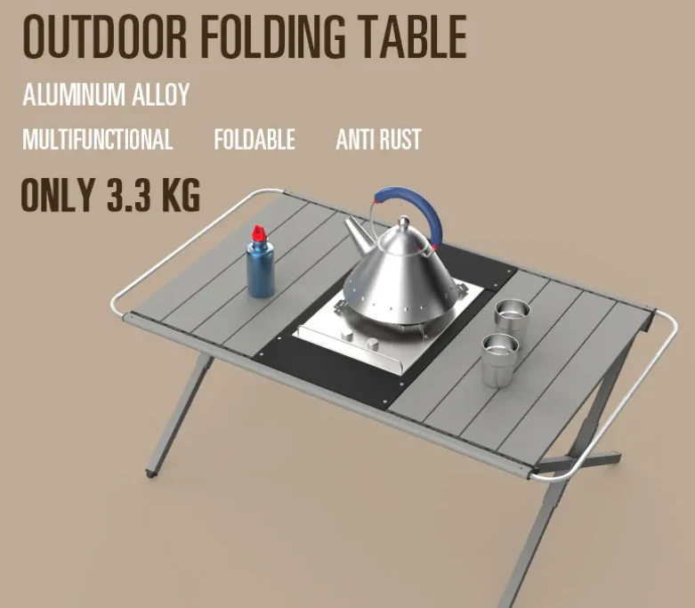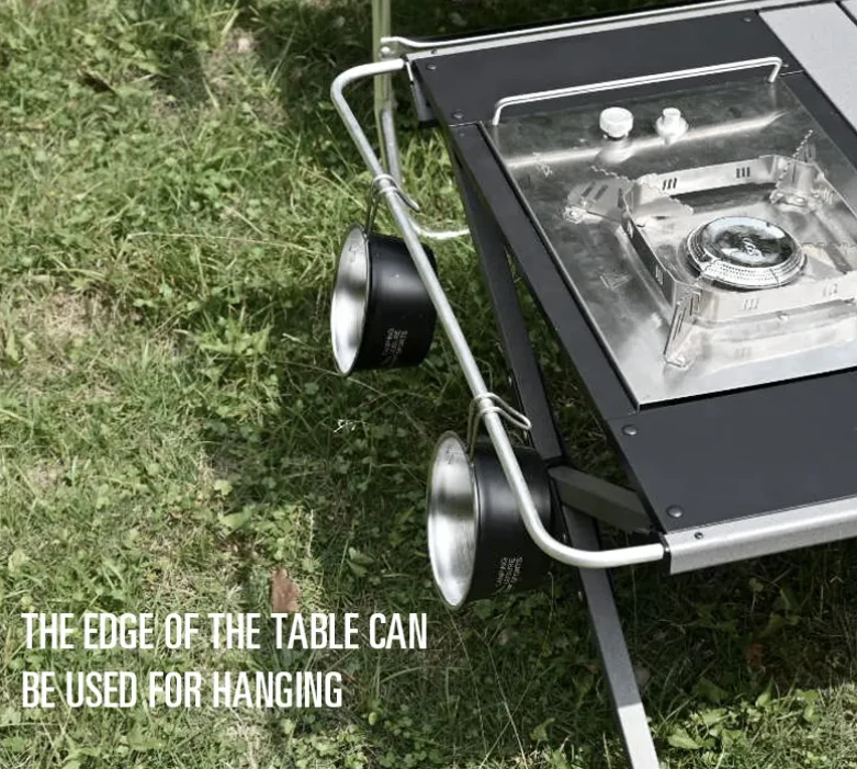 Жеңилдетилген көп тараптуу көп функционалдуу, сиздин муктаждыктарыңызга ылайык, IGT таблицасы. Кемпинг, барбекю, ачык тамак жасоо жана башкалар үчүн мыкты. Таблицанын жагы идиштерди илип коюу үчүн колдонсо болот