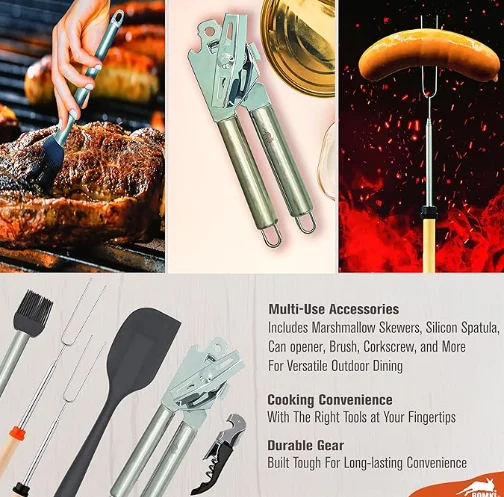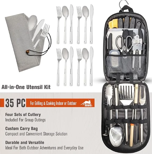Сырткы кемпинг бышыруучу бактарды сактоо сумкасы Бул 35 компью кампасы бышыруучу идиштерди бышыруучу буюмдар орнотулган. Ага кемпинг ашкананы орнотуу жана кемпинг идиштер бышыруучу бышыруучу бышырылган бышырылган бышырылган бажы салынган бажы салынган сумка, эки арткы чөнтөгү бар бажы салынган баштыкка салынган. Белги бардык кемпинг бышыруу керектигин канааттандырууга ылайыкташтырылган