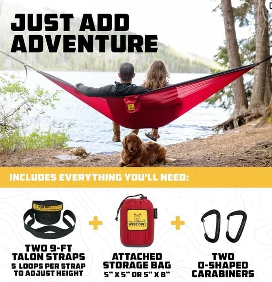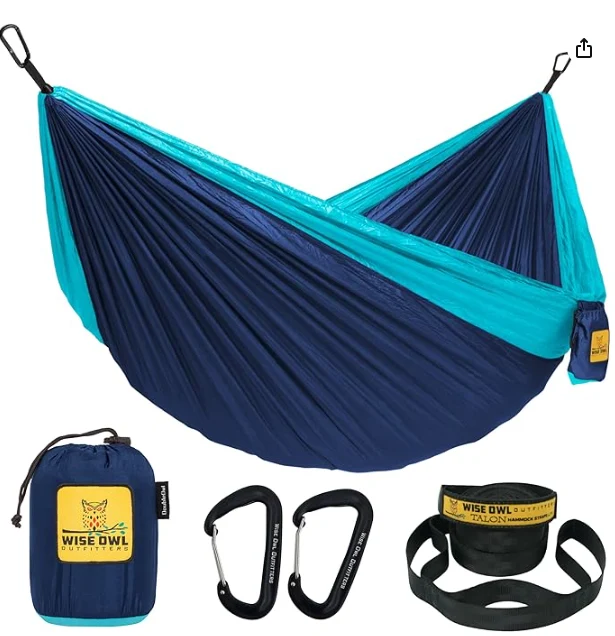 Портативдик кемпинг Hammock.Our Gamcaceight Hammocks сиздин шаймандарды координациялоо үчүн ар кандай түстөгү айкалыштарга, ошондой эле сиздин муктаждыктарыңызга жараша эки өлчөмдө. Жалгыз үкү ыңгайлуу бир адамды орун алат жана 400 фунтка чейин кармай алат. Кош үкү 500 фунтка чейин көтөрө алат жана экиден сонун болот. Түзүлгөндө, баштык телефонуңузга, суусундук же башка буюмдар үчүн чөнтөк катары эки эселенген. Компакттын ишмердүүлүгүнө караганда бир аздан чоңураак, бул гамак ачык укмуштуу окуяларга айланганга ылайыктуу.